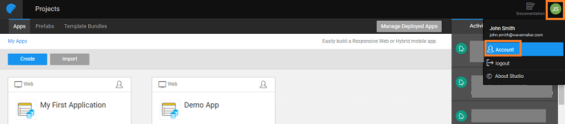 • You can set your personal preference, from Studio, by opening the Account Profile.