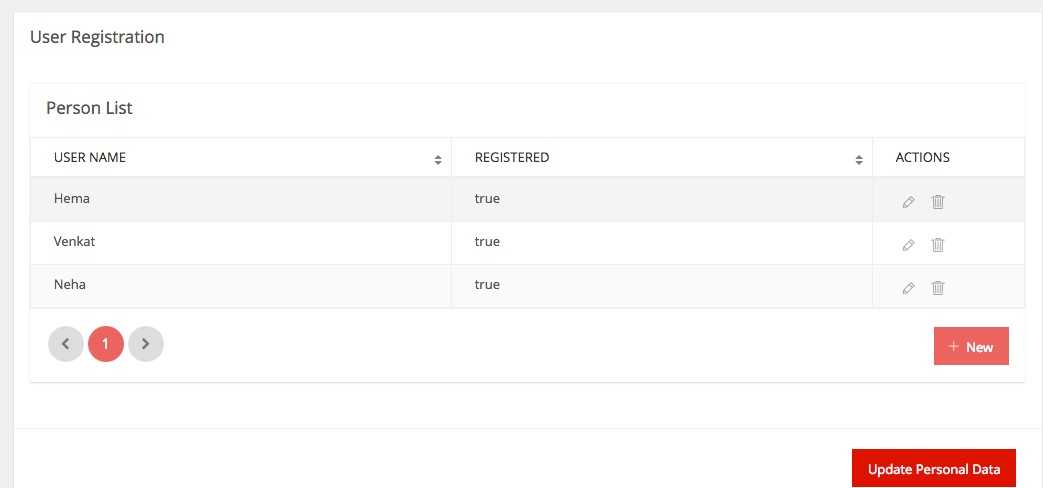 • Run the app and click on Update Personal Data on User Registration page