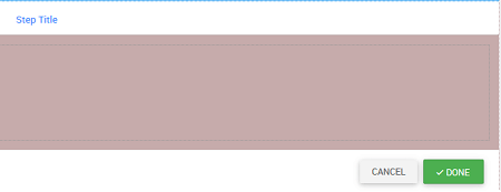 2. Drag and Drop a wizard on the canvas. Once the Wizard is dropped onto the canvas, you will see the UI as shown below. By default only one step with the Title as Step Title is created. Note there are two action buttons – Cancel and Done respectively