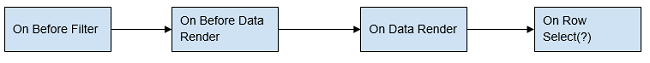 On Before Data RenderThis event will be called the before the data is rendered in the Data Table. Note: The data accessible is restricted to the current page of the Data Table. Use Case: If you want to change the display value based on the values of a column