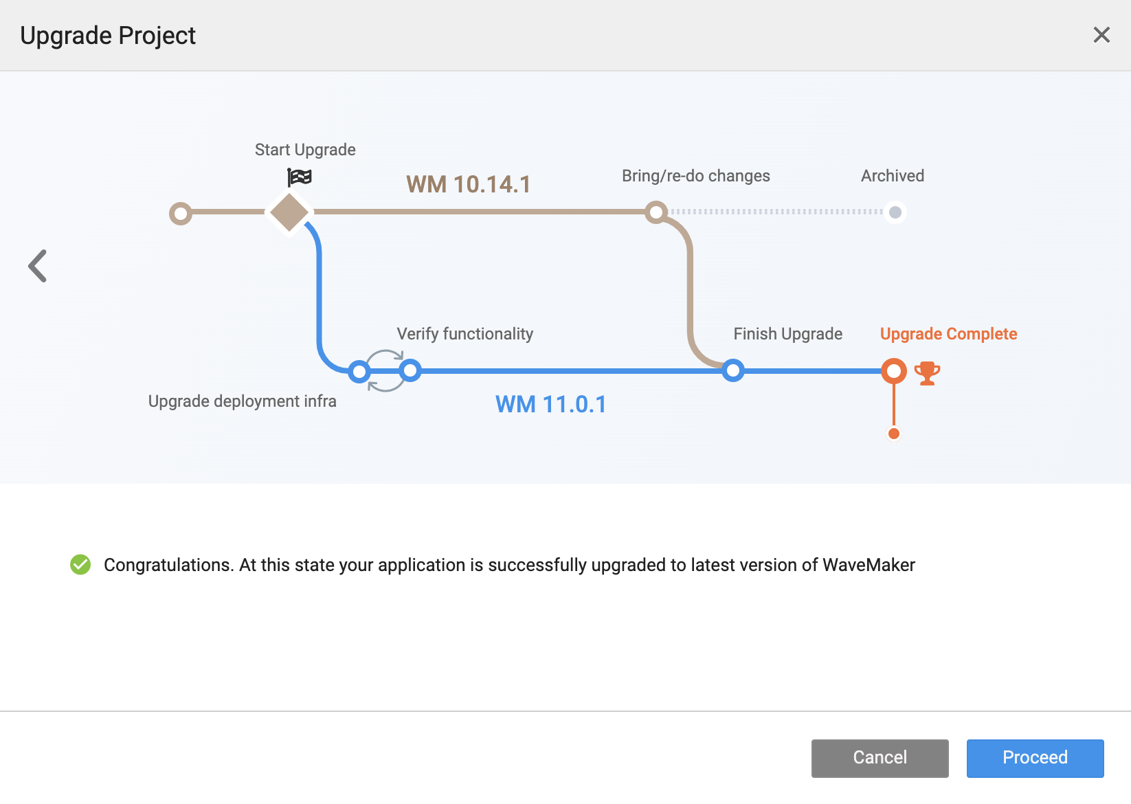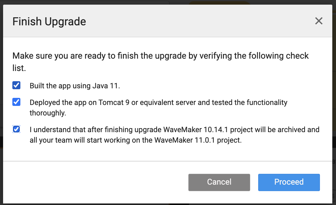 This guide helps you follow step-by-step instructions for upgrading your projects to WaveMaker 11.x. Follow these steps carefully and ensure you test the project thoroughly to complete the version upgrade. After finishing the upgrade, access all the amazing tools and features of WaveMaker 11.x. See WaveMaker 11 Beta Features to learn what's new.