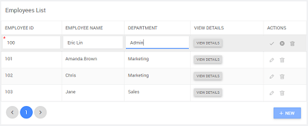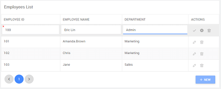 5. Preview the page, you will see the Employees table displayed wherein you can add NEW rows or edit existing rows.