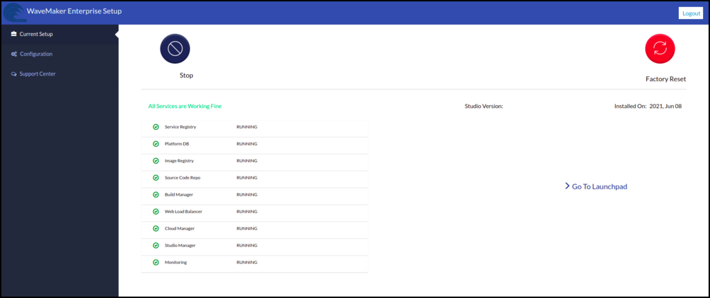 - WaveMaker Platform Stores its state into the disk. WaveMaker Platform administrators can take backups of those disk/directories and can restore them to any previous state.