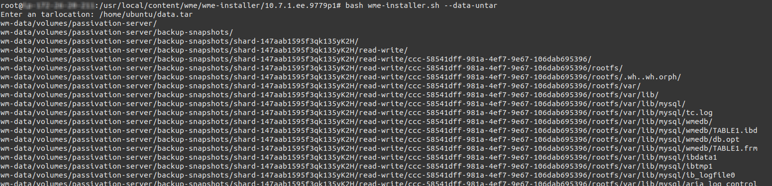 - Copy the generated data.tar to secure location on new WME Platform Instance or to any cloud storage services.