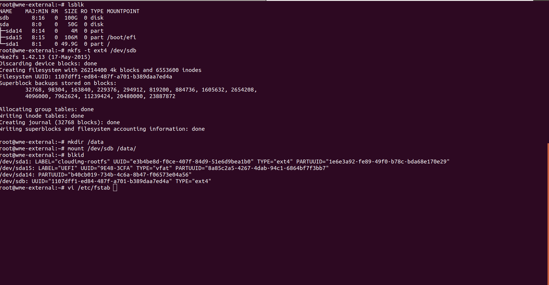 Command : mkfs -t ext4 /dev/<block-device-name_1>