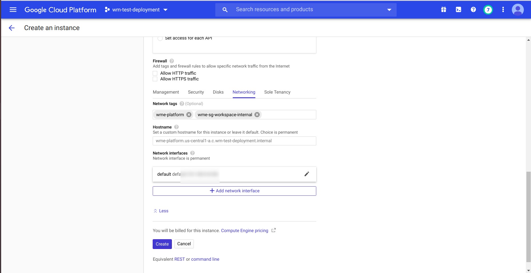 - At network section provide respected network tags of your firewall if you using source and target tags at firewall rules and create Instance.