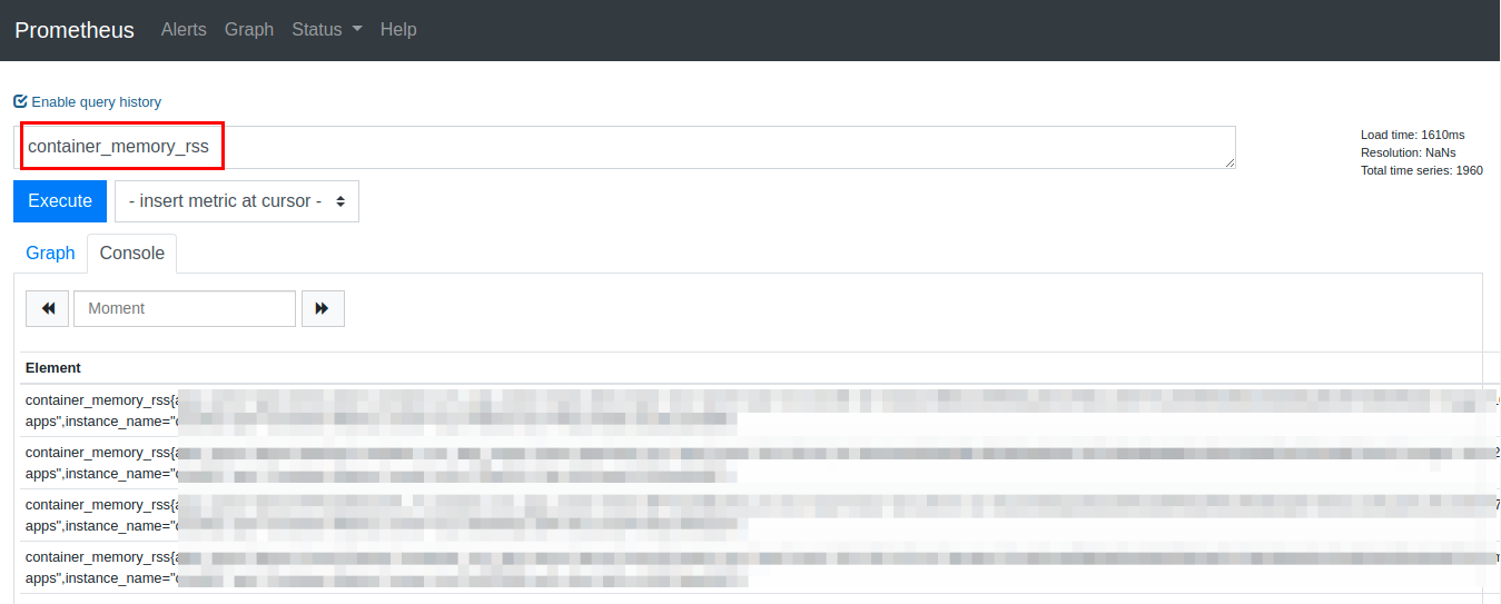 1) As we already know from the previous table, we can use container_memory_rss to get the memory of a container.