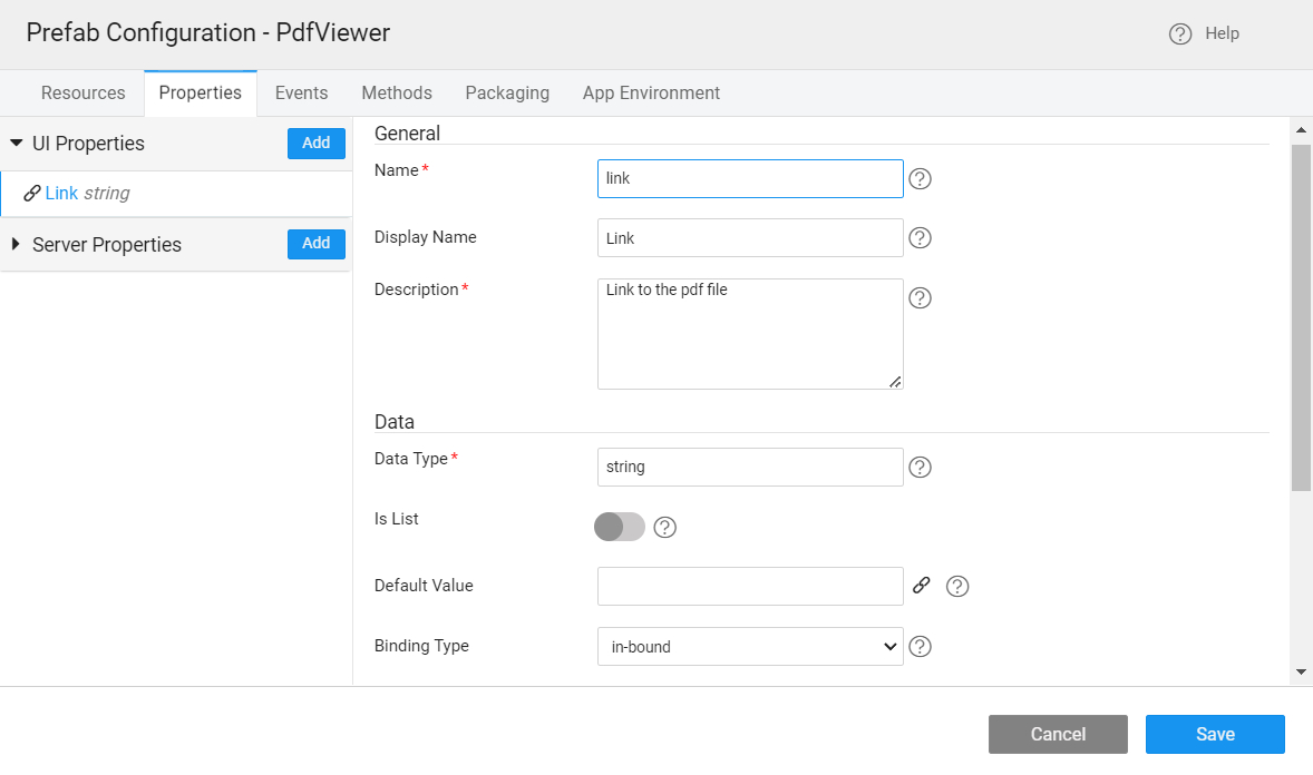 1. Then, select the Properties tab. Add Link and Pdfpassword Property in the UI Properties section and click on Save.